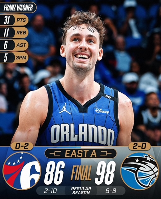 El miércoles Orlando venció 94-90 a Indiana con 29 puntos de Franz Wagner. Tatum anotó 36 en el triunfo 139-114 de Boston sobre los Nets. Los Bulls vencieron 124-123 a los Knicks gracias a 31 puntos de LaVine. Karl-Anthony Towns anotó 46 por los Knicks. Los Cavs pusieron su marca en 13-0 al vencer 114-106 a los 76ers con 23 puntos de Mitchell. Giannis Antetokounmpo anotó 54 puntos con 14 rebotes y 7 asistencias en el triunfo 127-120 de Milwaukee sobre Detroit en tiempo extra. Cade Cunningham anotó 35 con 11 asistencias por Detroit. Los Spurs vencieron 139-130 a Washington con Wembanyama anotando 50 puntos al lanzar 16-8 de la línea de tres puntos. Poole anotó 42 por Washington. Los Lakers vencieron 128-123 a Memphis con triple-double de LeBron James al anotar 35 puntos con 12 rebotes y 14 asistencias. Los Kings vencieron 127-104 a los Suns gracias a 29 puntos de Fox. Portland volvió a vencer a los Wolves, esta vez 106-98 gracias a 33 puntos de Shaedon Sharpe.